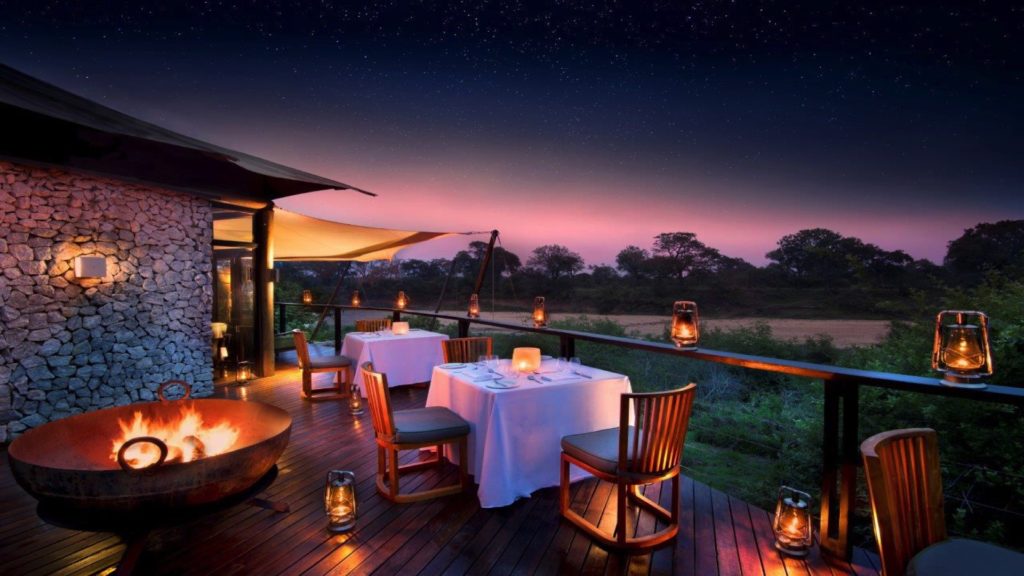 Built on platforms, each tented suite is cleverly designed to blend into the riverside trees, minimising the impact on the environment. Mature indigenous shade trees form a luxuriantly cool canopy overhead and elegant guest areas overlook the seasonal Timbavati River. The camp’s lap pool, which follows the contours of the riverbank, is perfect for idle afternoon game viewing, while a massage Sala adds a touch of pure indulgence. The food at Ngala is as individual and inventive as the camp itself. Private lunch platters are savoured on the viewing decks, at the poolside or on the lush lawn. Theatrical al fresco dinners in the dry riverbed are unforgettable.