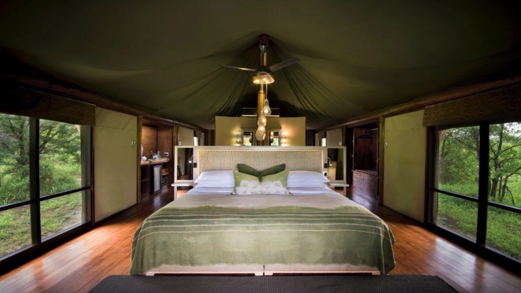 • The tented suites are a great blend of contemporary design with the unique closeness to nature that only sleeping under canvas can deliver – as you lie awake in your massive bed listening to the sound of lions roaring into the night through the canvas walls of your tent, you’ll feel like a modern version of the safari explorers of old!