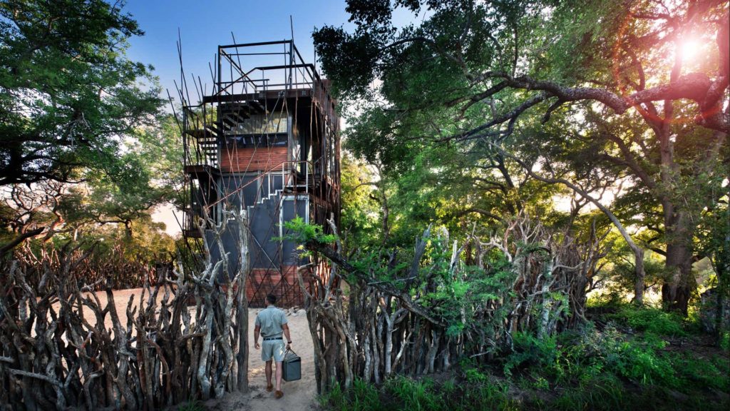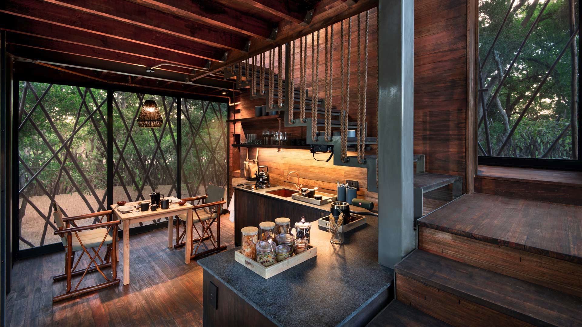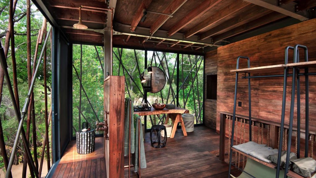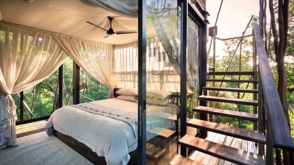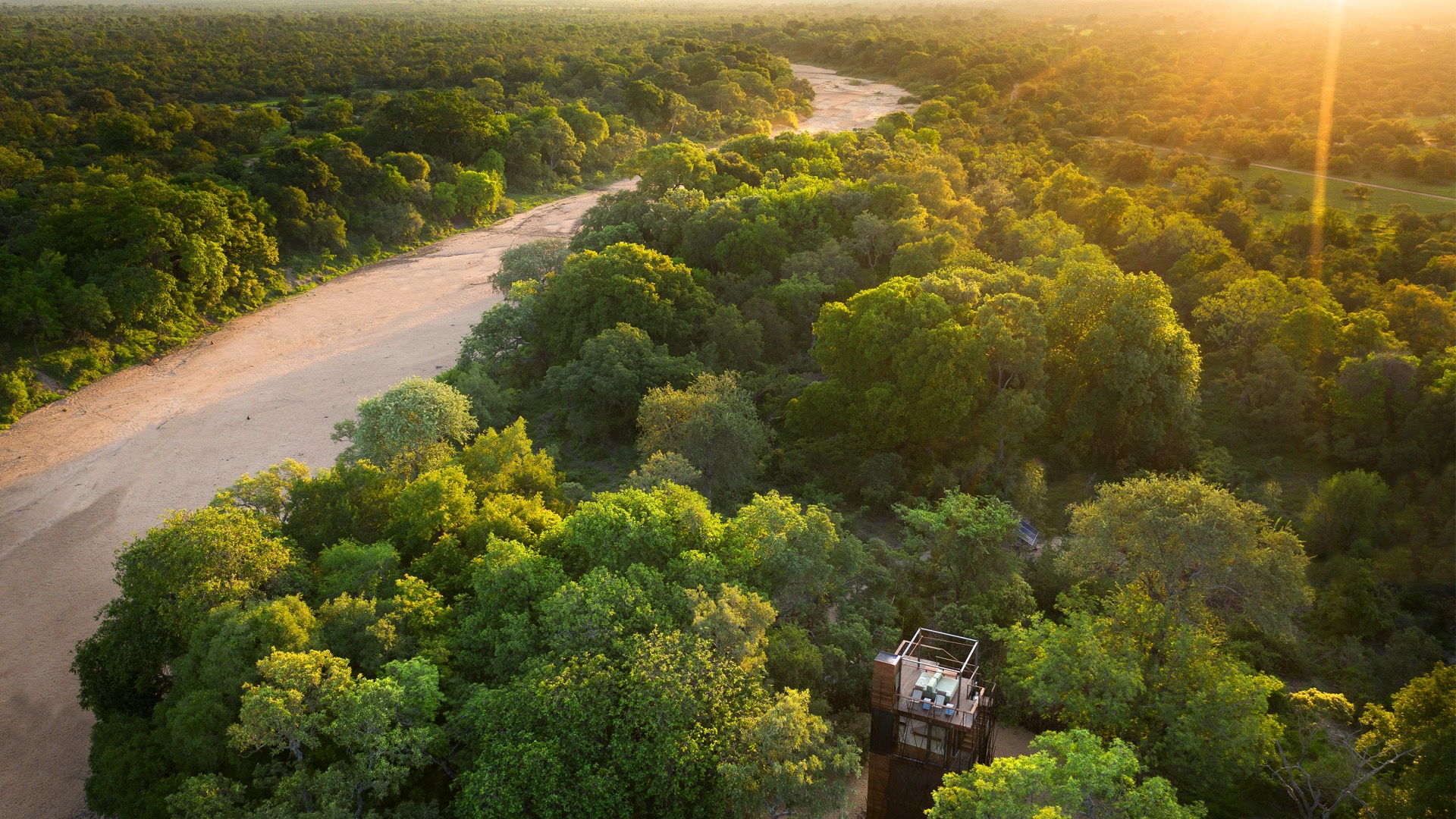 An elevated sleep-out platform allows you to slumber al fresco under a retractable screen. Enjoy sundowner drinks and snacks on the upper deck, a picnic and midnight treats. Completely off the grid, this treehouse promises luxury and comfort while offering the most exclusive wilderness experience.