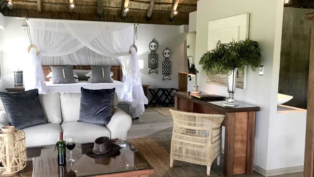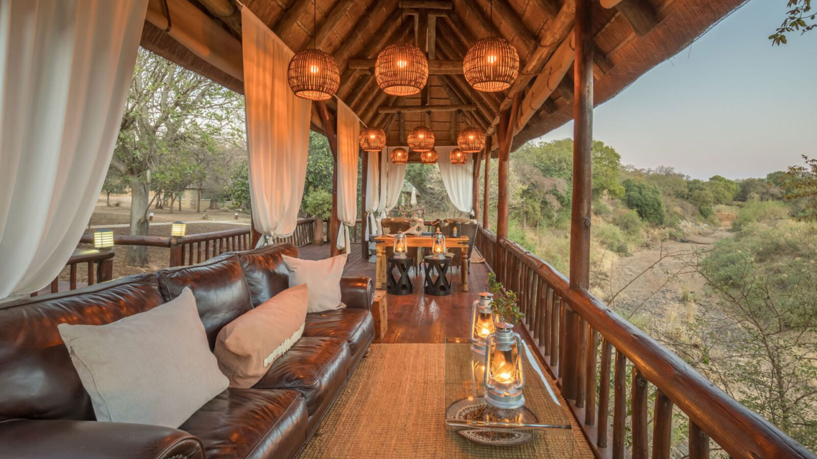 The enchanting view over The Makhutswi River is a natural treasure providing insight into the secret river life. The spacious lounge area leading onto a vast deck allows for endless opportunity to view elephant as well as grazing antelope.=