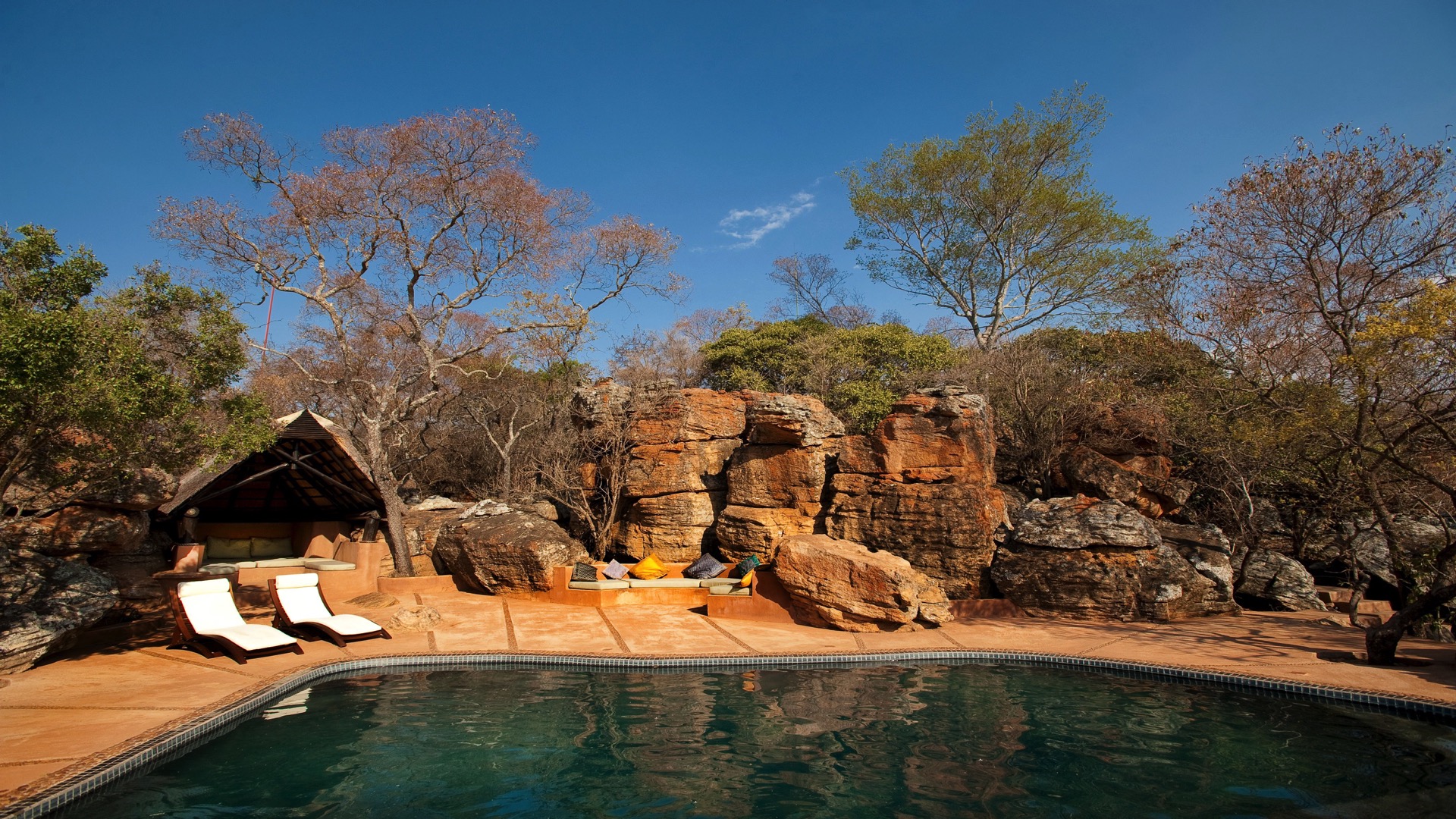 Accommodation at Leobo Lodge features 4 Luxury Chalets with king-size beds (3 with panoramic views and 1 with a bush view), 1 Superior Chalet with a double bed, 3 Standard Chalets with twin beds or with 2 bunk beds (ideal for 4 children) and 1 Family Unit consisting of two bedrooms sleeping, 2 adults and 2 children. Each room has an en-suite bathroom with a bath and a shower. The lodge is fully staffed, complete with multiple lounge areas, a fully stocked bar, snooker table, wi-fi, boma, sauna, music system, TV, tennis table, curio shop, sunken fire pit and a stunning heated swimming pool built into the side of the mountain which is fantastic for children.
