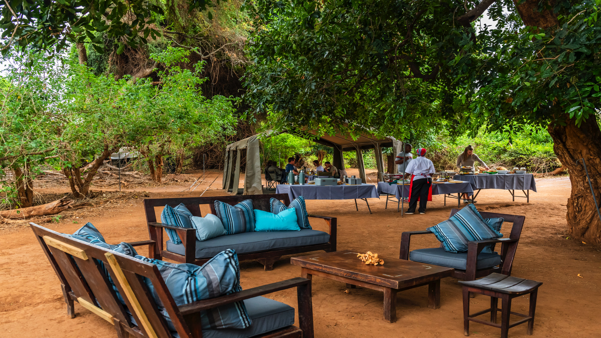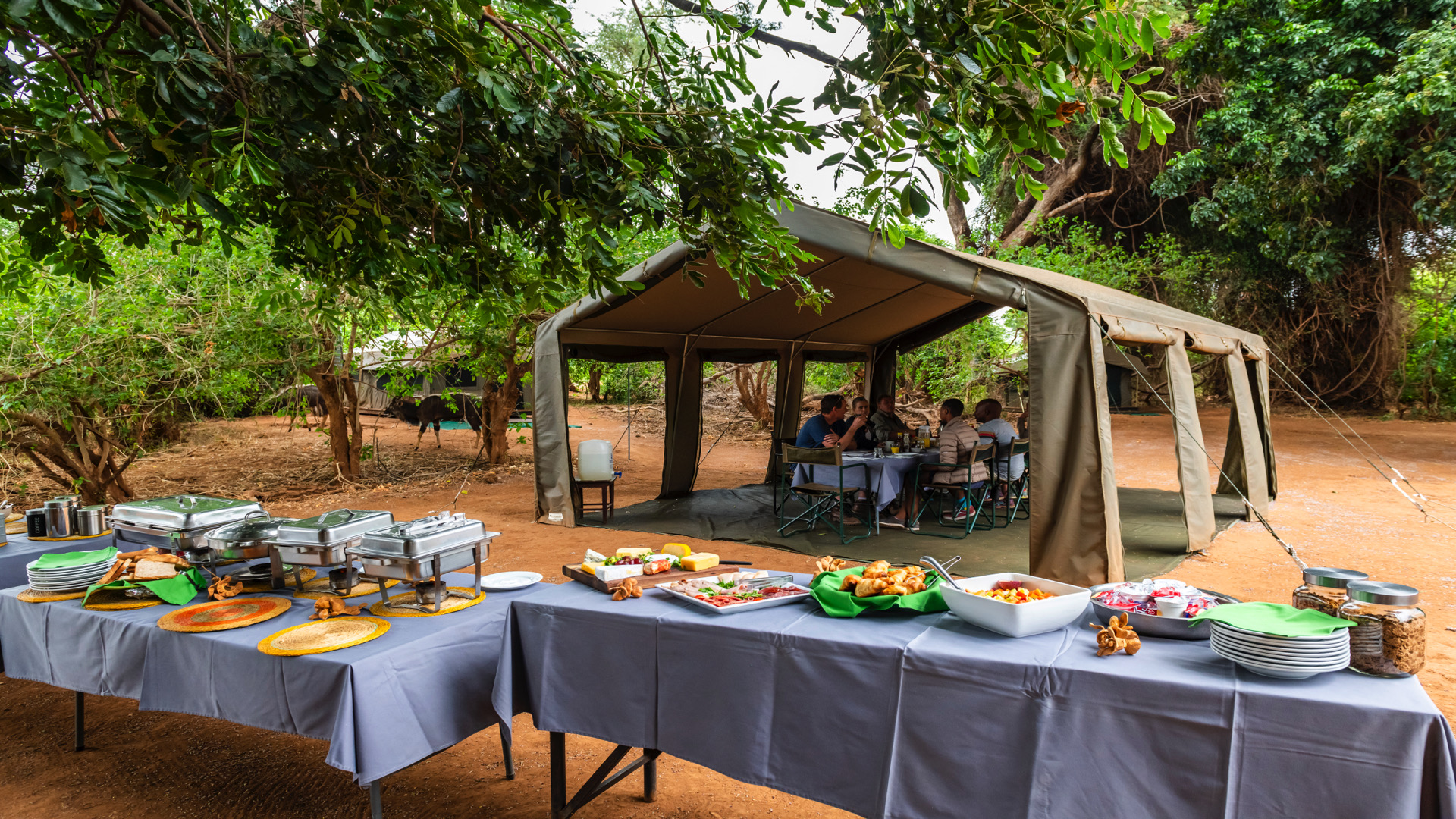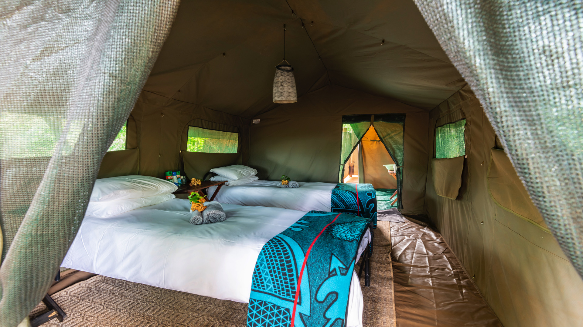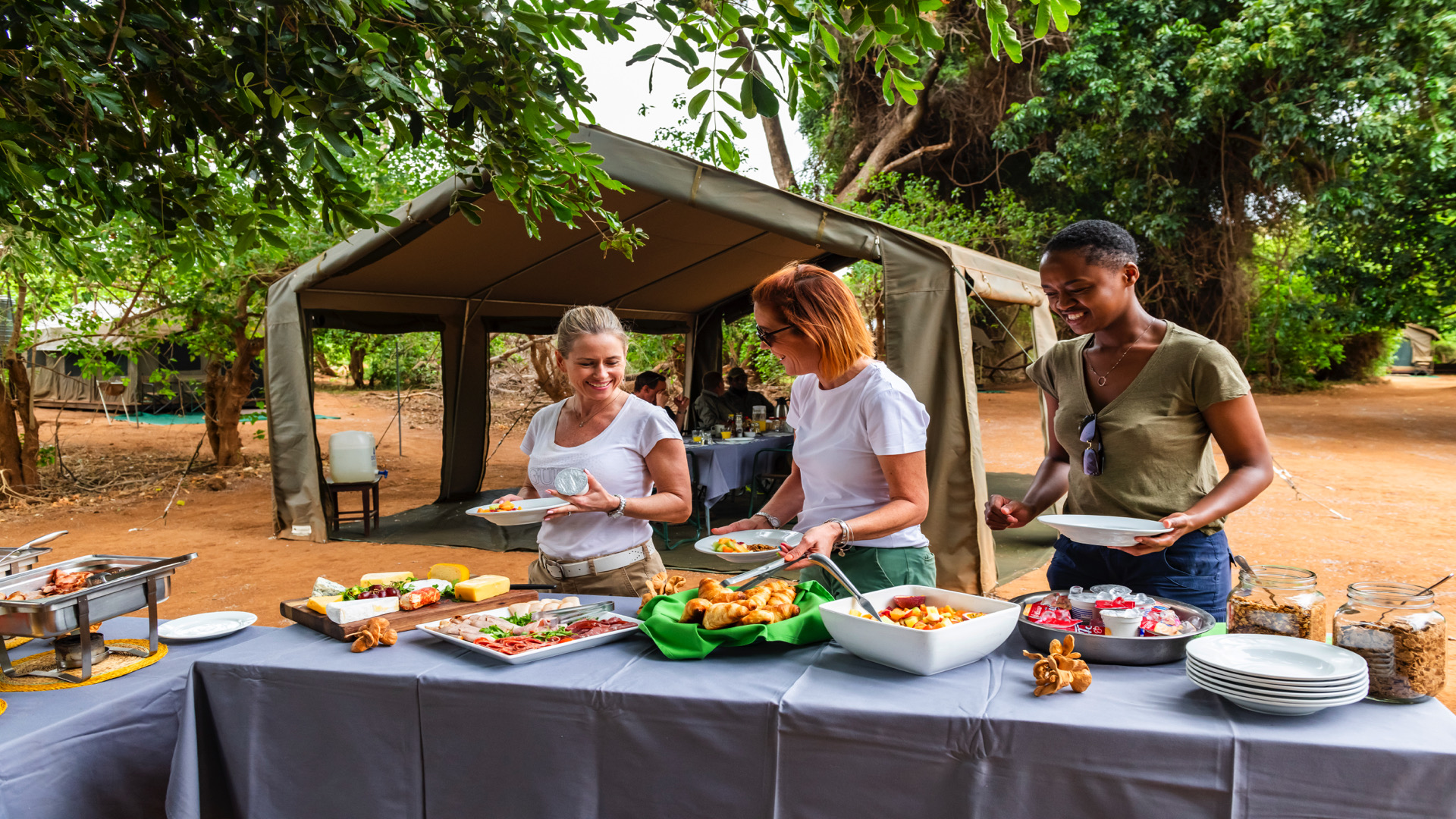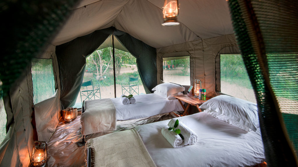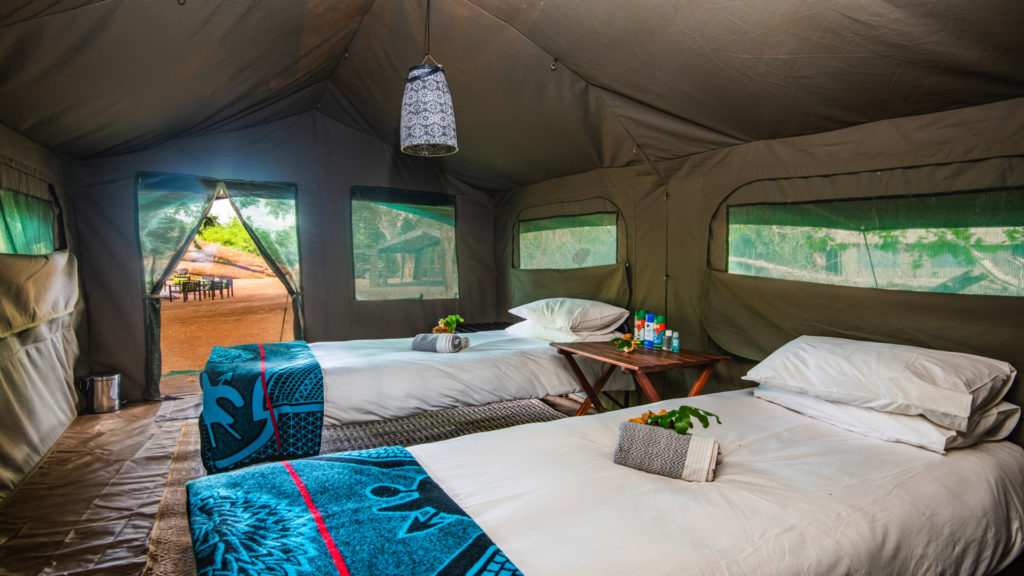 Accommodation is in walk-in canvas dome tents ensuring that guests are intimately connected with the surrounding wilderness. The trails camp will have two bucket type hot water showers, and en-suite chemical toilets are provided, attached to each guest tent. The site of the camp is the same each night, with trailists walking in different directions from the camp each day, dependent on local conditions.