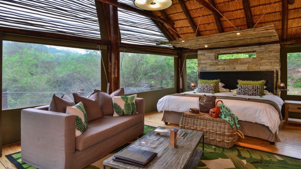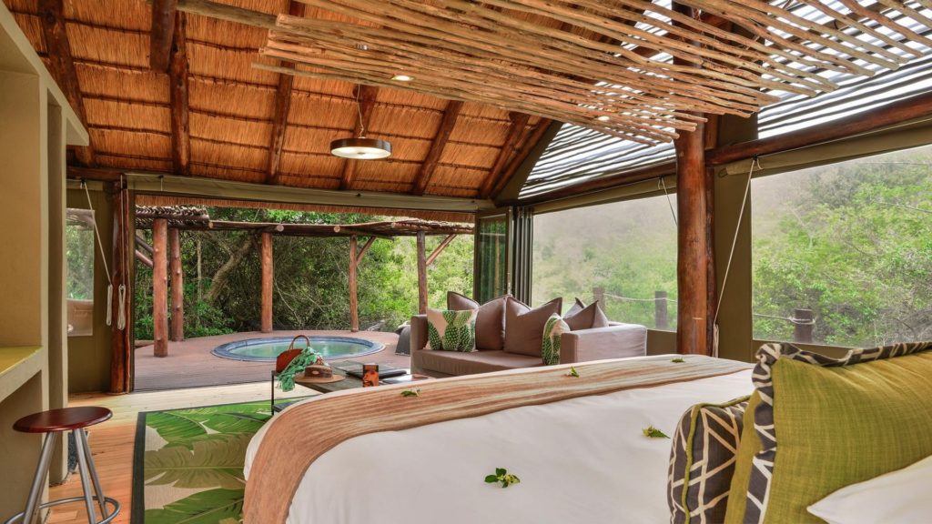 There are only 12 tents at Bayethe Tented Lodge, each nestled away in the vegetation to ensure privacy and seclusion, the ideal place to spend your downtime by the fireplace before game drives, taking a dip in the plunge pool or relaxing on your deck.