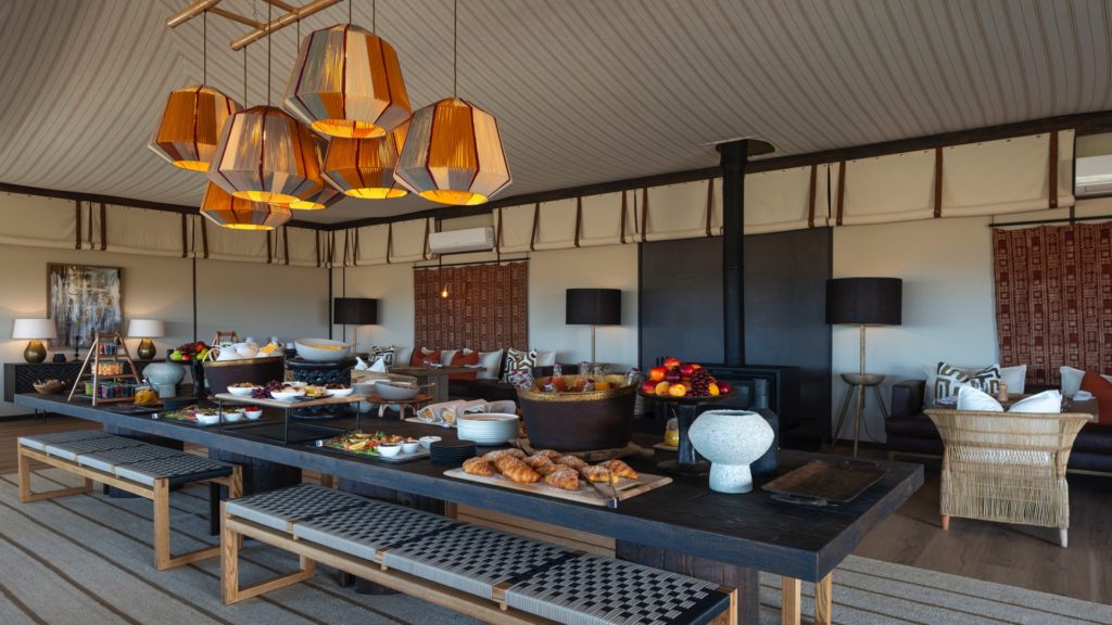 The dining area and bar are situated to make the most of the views over the reserve, with focal points including a large harvest table and fire pit.