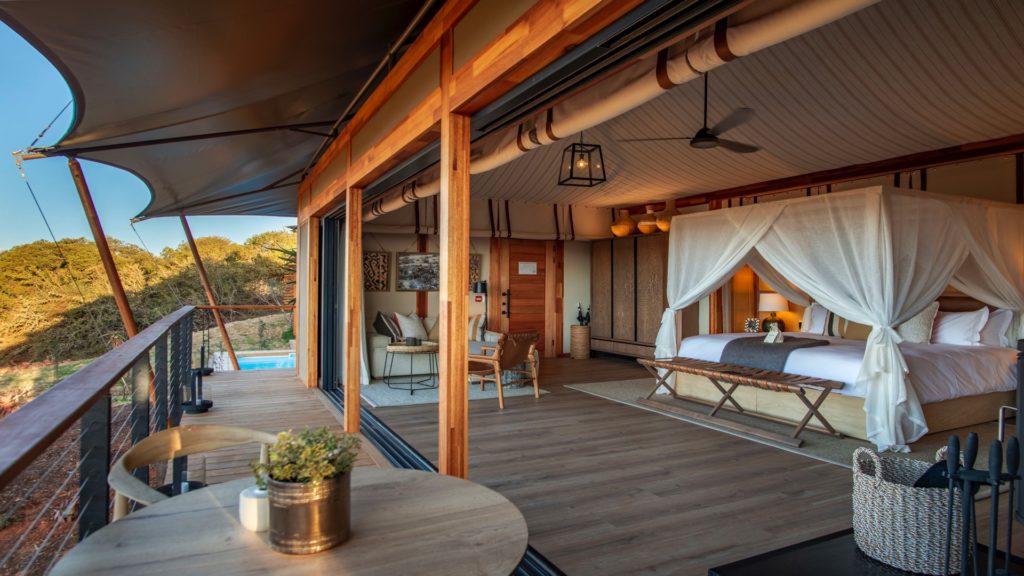 The nine luxury free-standing tents are elevated above the surrounding bush, allowing uninhibited views, unsullied by any other man-made structures or light pollution. The harmonious, intimate design minimises the environmental footprint.