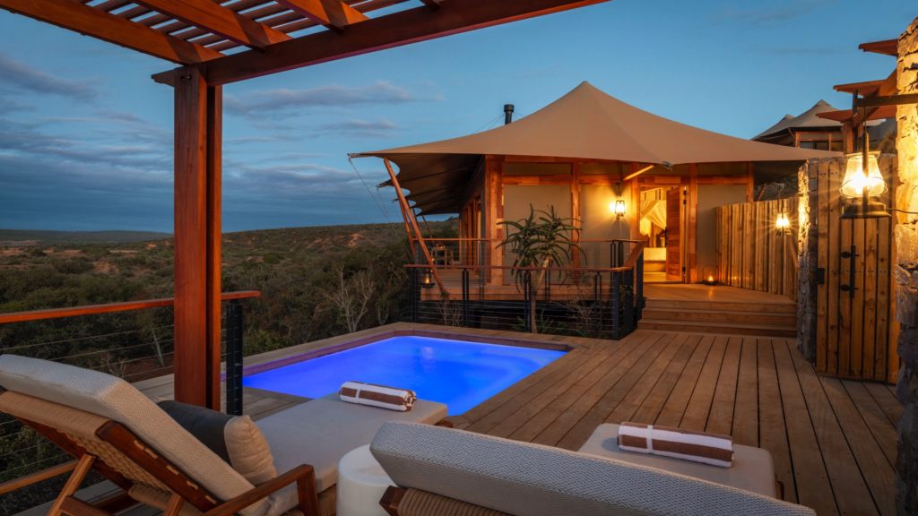 Sindile, Shamwari’s new luxury tented camp is a secluded, luxury getaway set deep in the African veld. The camp mimics a solitary leopard’s sanctuary, blending with the surrounding bush while providing excellent vantages over the Bushman’s River and surrounding plains.